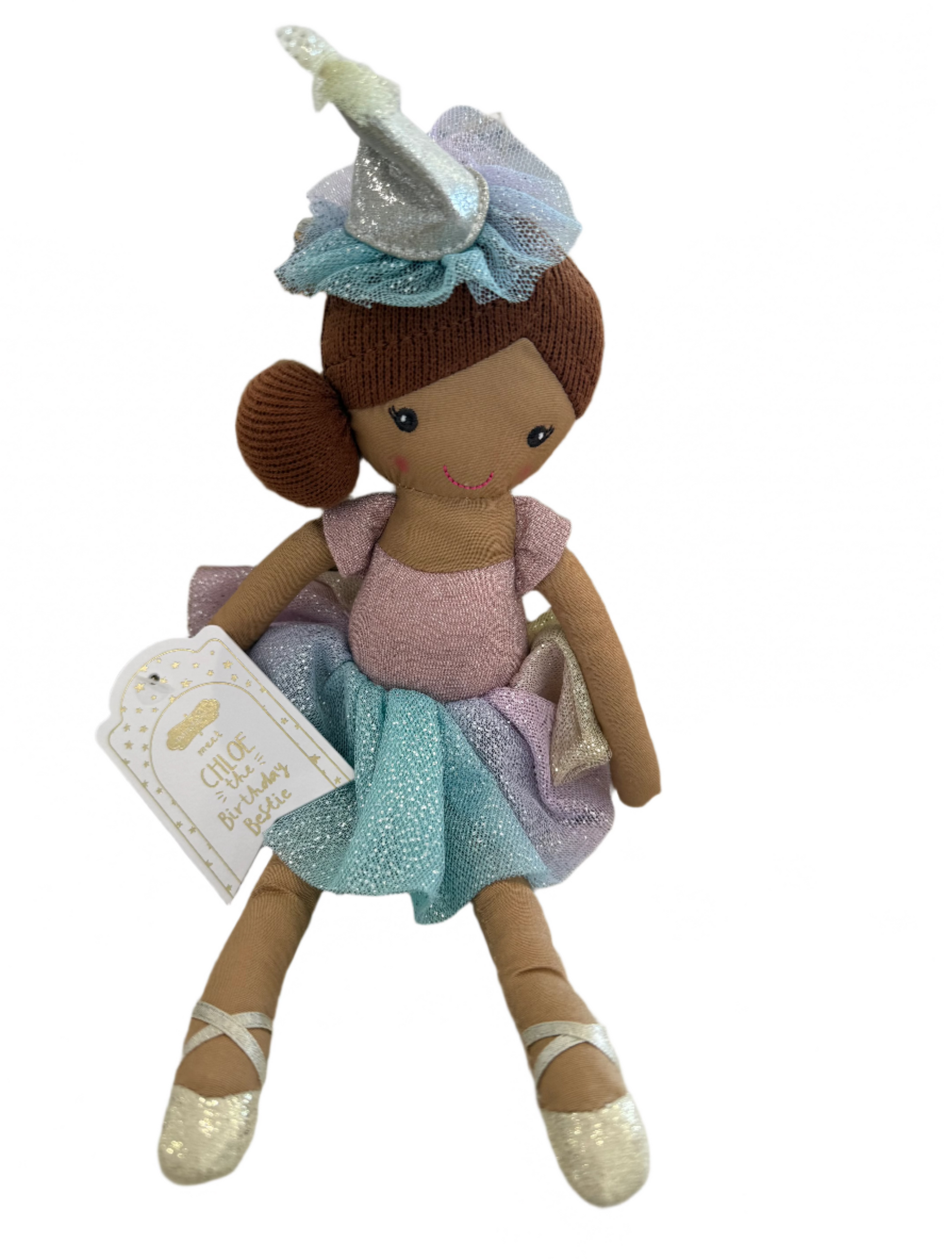 Celebrate every special moment with the Birthday Bestie Doll, crafted from soft faux linen for a charming, durable feel. Her sweater knit yarn hair adds a cozy touch, while the festive party hat and vibrant rainbow mesh tutu skirt bring joyful color and whimsy. Perfect for gifting or play, this doll makes every birthday unforgettable.