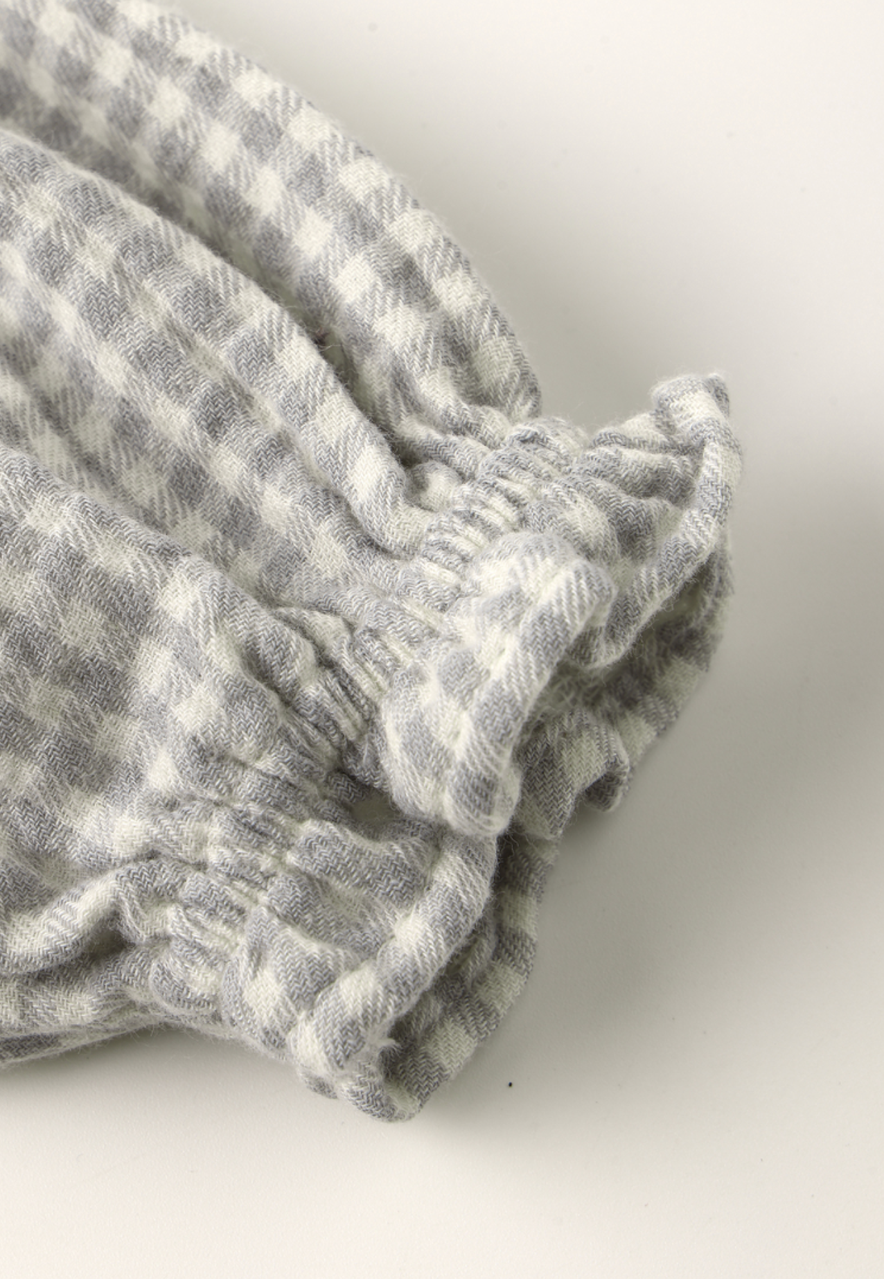 Turn heads in this stunning Blue Gingham Eden Romper! The charming bubble design in a classic blue and white gingham print is elevated by delicate ruffled sleeves and a smocked bodice. Perfect for a day out in the sun, this romper exudes effortless style and youthful charm.