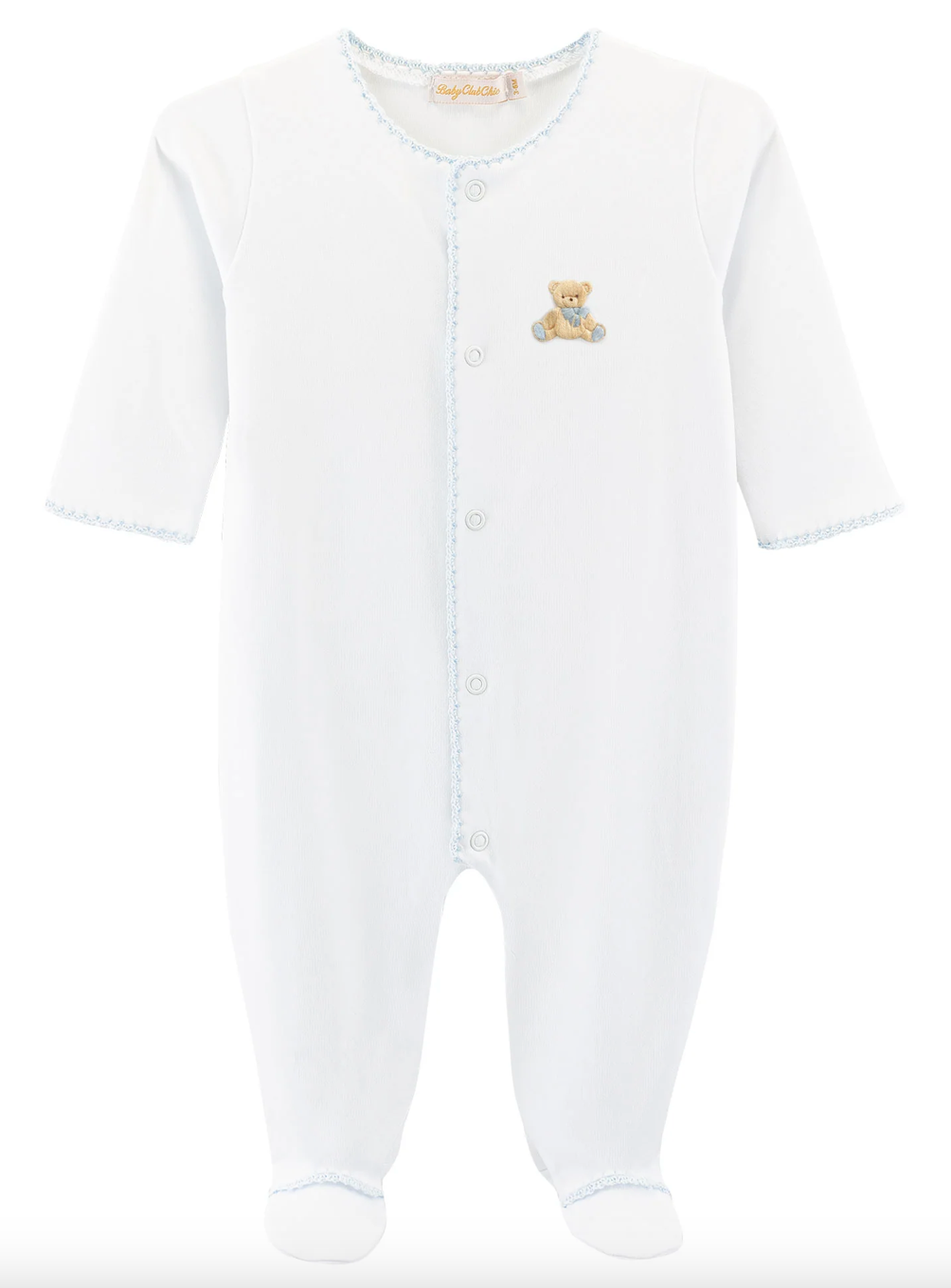 Indulge in luxury for your little one with our Blue Toys Footie. Made from 100% Peruvian Pima Cotton interlock, this footie features a beautiful and delicate design for ultimate comfort and style. Pamper your baby with the softest fabric and make every moment a precious one.