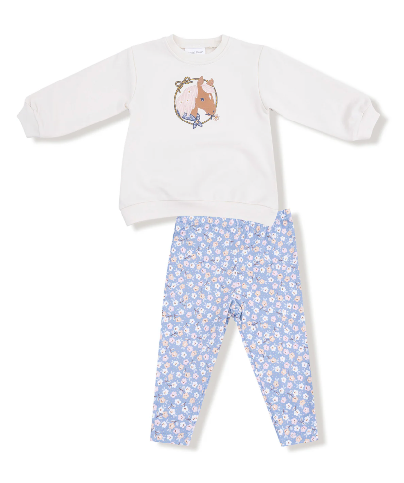 Bring a cozy touch of countryside charm to your little one’s wardrobe with the Country Calico French Terry Set. The oversized French terry sweatshirt, featuring playful puff sleeves and a sweet horse head applique, offers warmth and whimsical style. Paired with silky, breathable viscose from bamboo leggings, this set ensures all-day comfort and gentle care for sensitive skin. Perfect for play, naps, and chilly days, it’s an easy-to-layer outfit that keeps your child comfy and ready for every adventure. Embrace softness and charm with this delightful fall and winter essential.