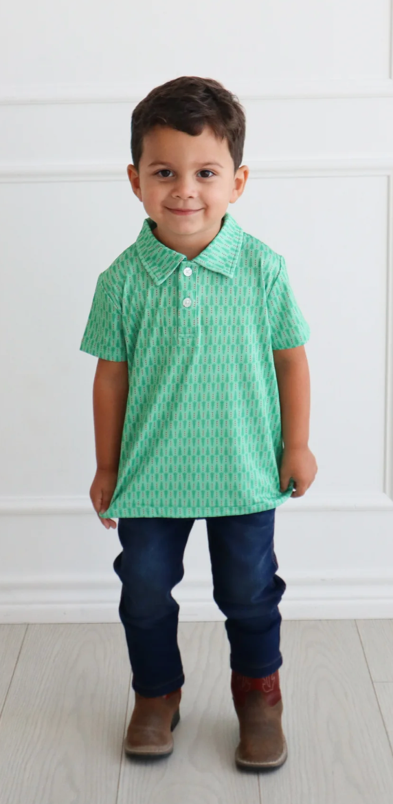 The Kyle Polo brings a festive flair to the timeless classic with its breathable fabric and playful Christmas tree print. Perfect for holiday photos, family dinners, or a casual golf game with dad, this green polo combines comfort and style effortlessly. Dress your little one in the Kyle Polo to keep him cozy and merry all season long.