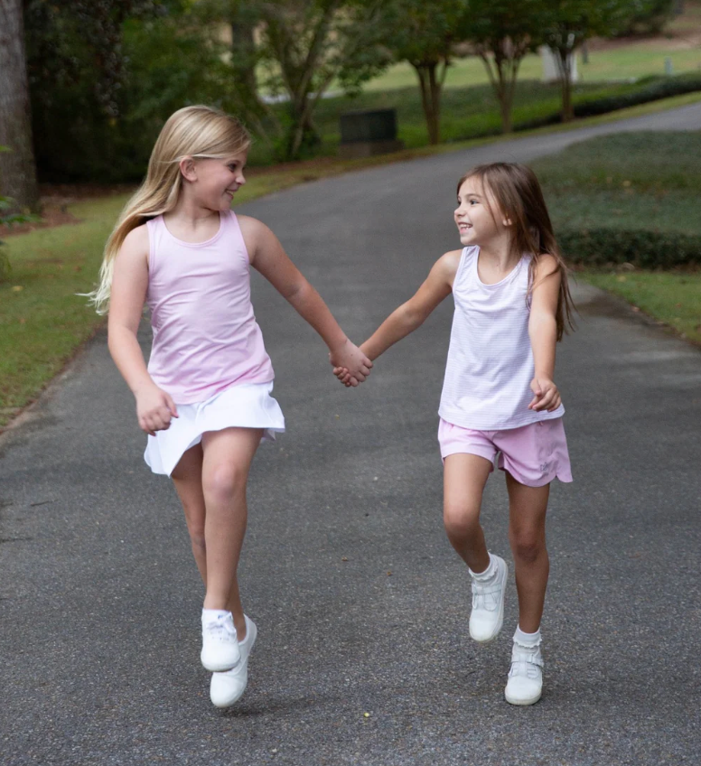 Elevate your little one's style with our Pink Race Her Back Tank. This active tank top in Pink Lady is perfect for girls who love the outdoors. Whether playing tennis, cruising the coast, or just having fun on the playground, this tank is a must-have. Get it now for the perfect blend of sass and class.