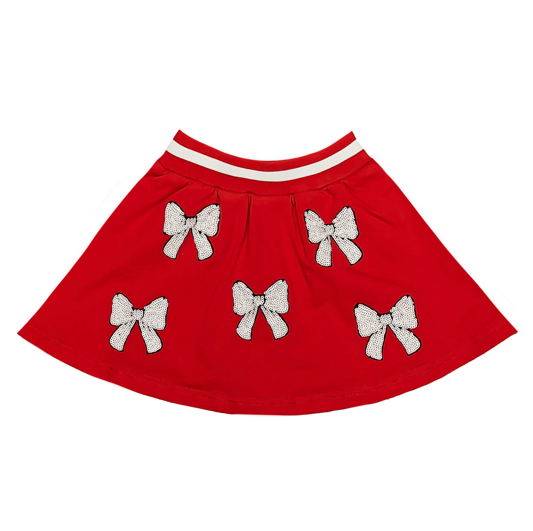 Experience the ultimate combination of style and comfort with our Red White Bow Skort! This stunning red skort is adorned with sparkling sequin bows all over, making it a standout piece. Perfectly paired with our red white bow sweatshirt, it's the perfect addition to any fashionista's wardrobe.