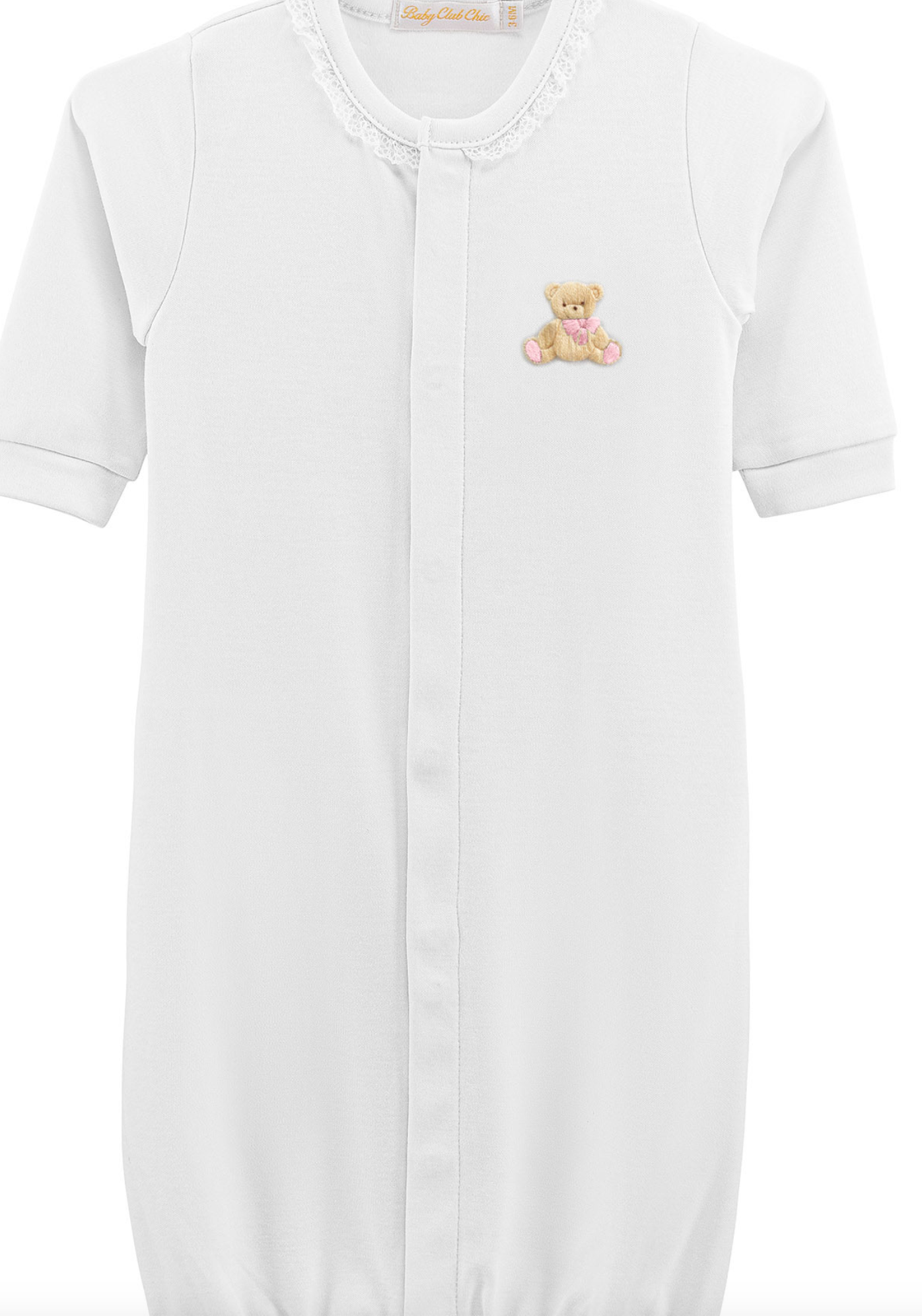 Crafted from 100% Peruvian Pima Cotton interlock, this Toys Pink Conversion Gown offers exceptional softness and gentle comfort for your infant girl. Its delicate design ensures your little one stays cozy and stylish, making it a perfect choice for everyday wear or sleep. Designed with both comfort and ease of use in mind, this gown keeps your baby snug while allowing for quick changes.