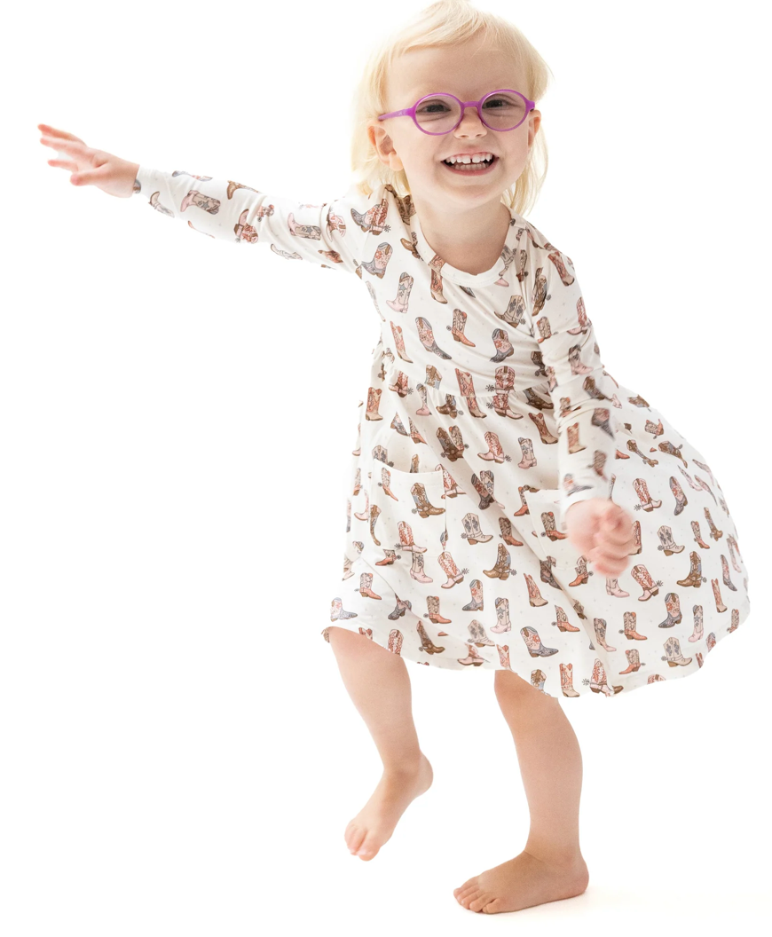 Experience effortless charm with the Twirly Long Sleeve Dress, crafted from luxuriously soft bamboo viscose that feels gentle against the skin. Its full skirt invites endless twirling, while the long sleeves keep your little one cozy on cooler days. Perfect for playdates, parties, or capturing picture-perfect memories, this dress combines comfort and style to make every moment unforgettable.